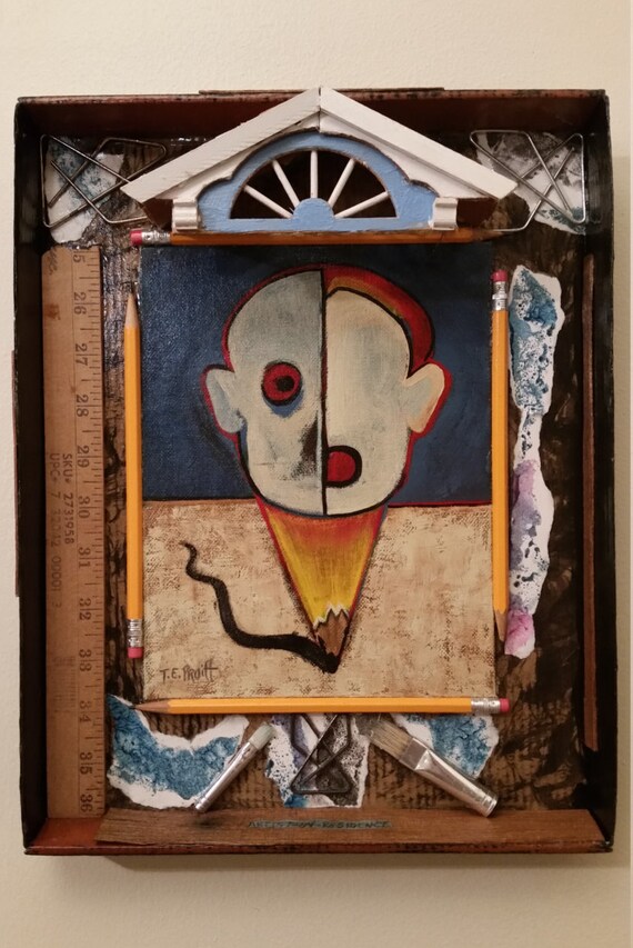 Artist In Residence Wall Hanging Art 3d Assemblage With Original Painting And Found Objects By Tree Pruitt 11 By 14 Inches